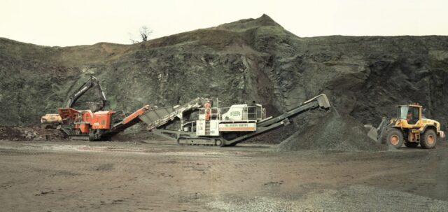 Moons Hill Quarry was on the Knatchbull family estate, and John Wainwright in partnership with the Luffs purchased the site in 1897. In 1902 Wainwright’s became a limited company. Between 1907-25 a narrow gauge railway connected Downhead and Moon’s Hill Quarries with the rail system at Waterlip, improving the transportation of stone. In 1934 Wainwright’s invested in their first coating plant for the making of concrete and tarmac. However, in the quarry, ‘stone getting’ was still a manual job, involving hand loading into large buckets which were then winched up to the crusher. This continued to be so until face shovels and Muir Hill dumpers were introduced more than ten years later. The subsequent development of the site was made in 1962, 1973, 2005/6 and more recently 2013.